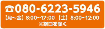 ※ご対応可能な時間(8時~17時 月曜日~金曜日)(8:00~12:00 土曜日)(※日曜日・祭日を除く)